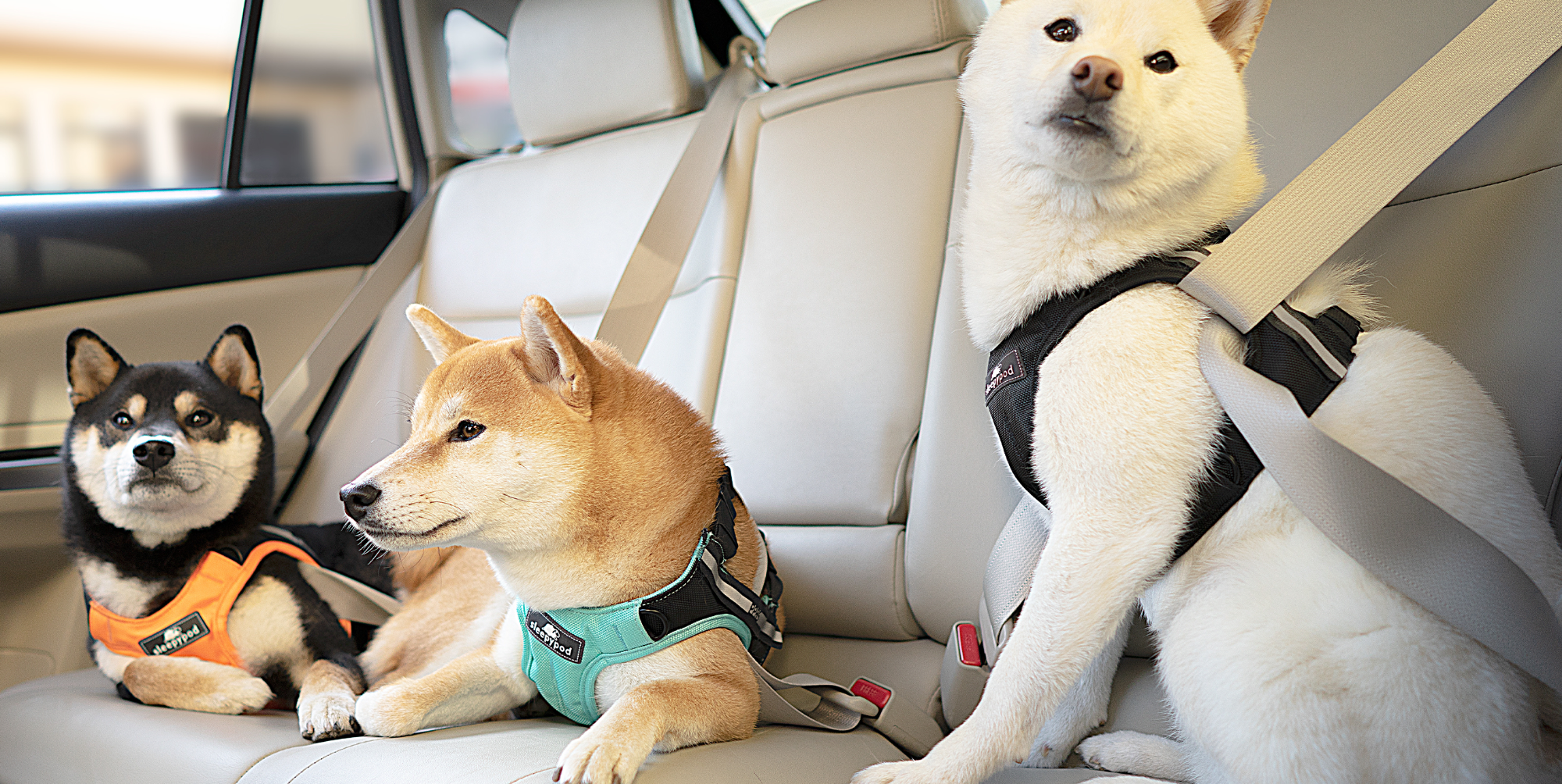 Crash tested safety harnesses in a wide range of sizes for dogs allow you to fasten your dog into the seat belt securely.