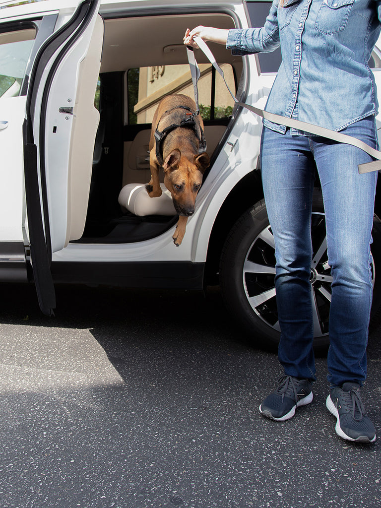 • Three-point design for use in the rear passenger seat secures a dog’s torso