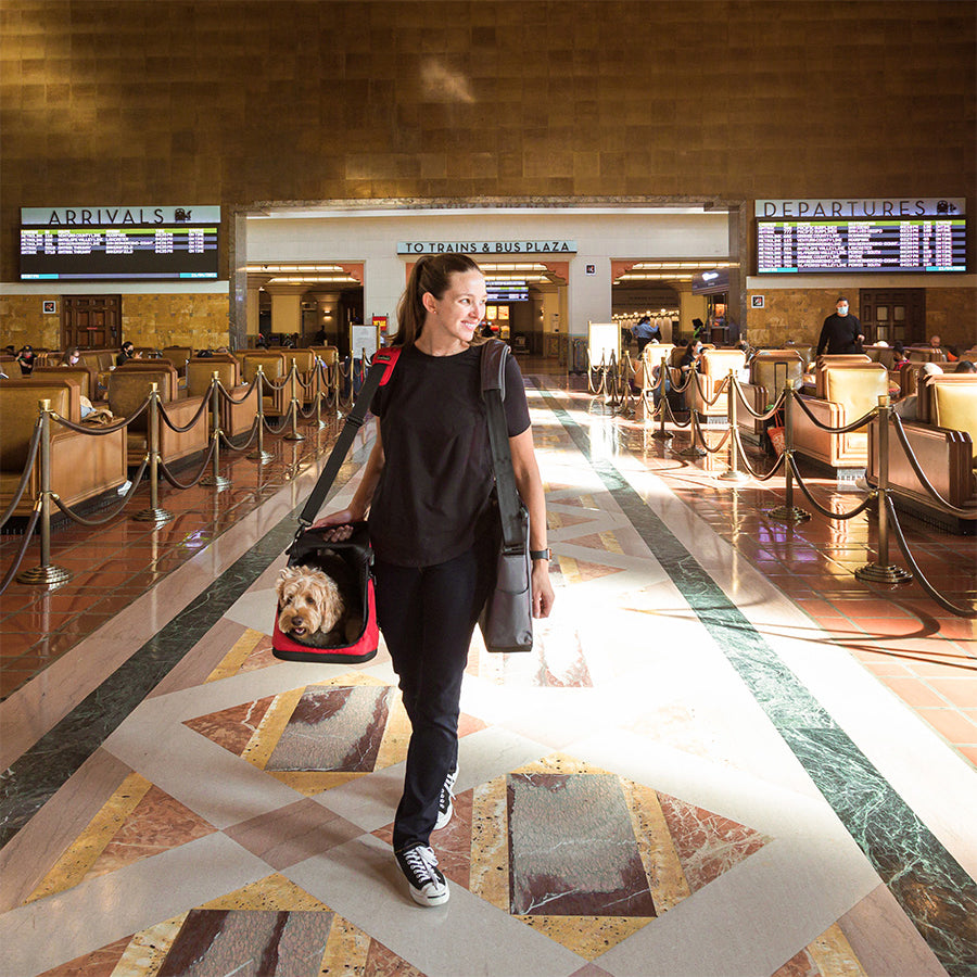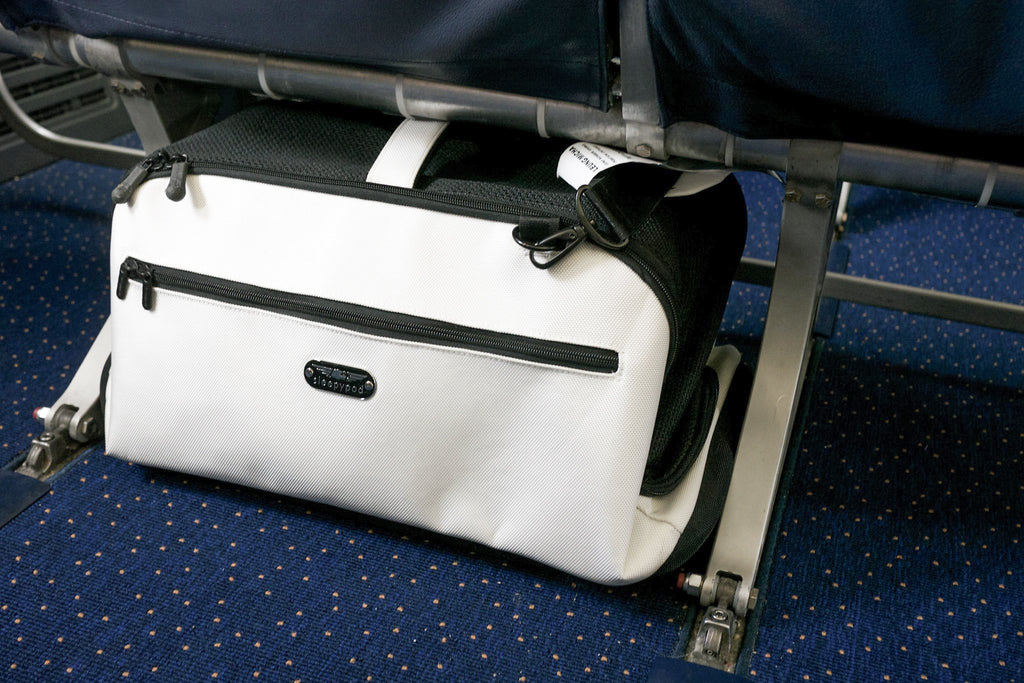 Sleepypod Air provides the largest amount of space for in-cabin air travel. An innovative design enables it to contract in size to fit in the space below a range of airline seats during the restricted times of takeoff and landing. Once the plane is in the air, it can be expanded to give a pet extra space to stretch out.